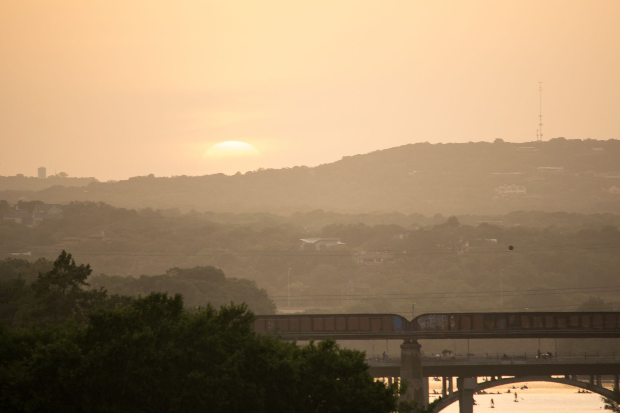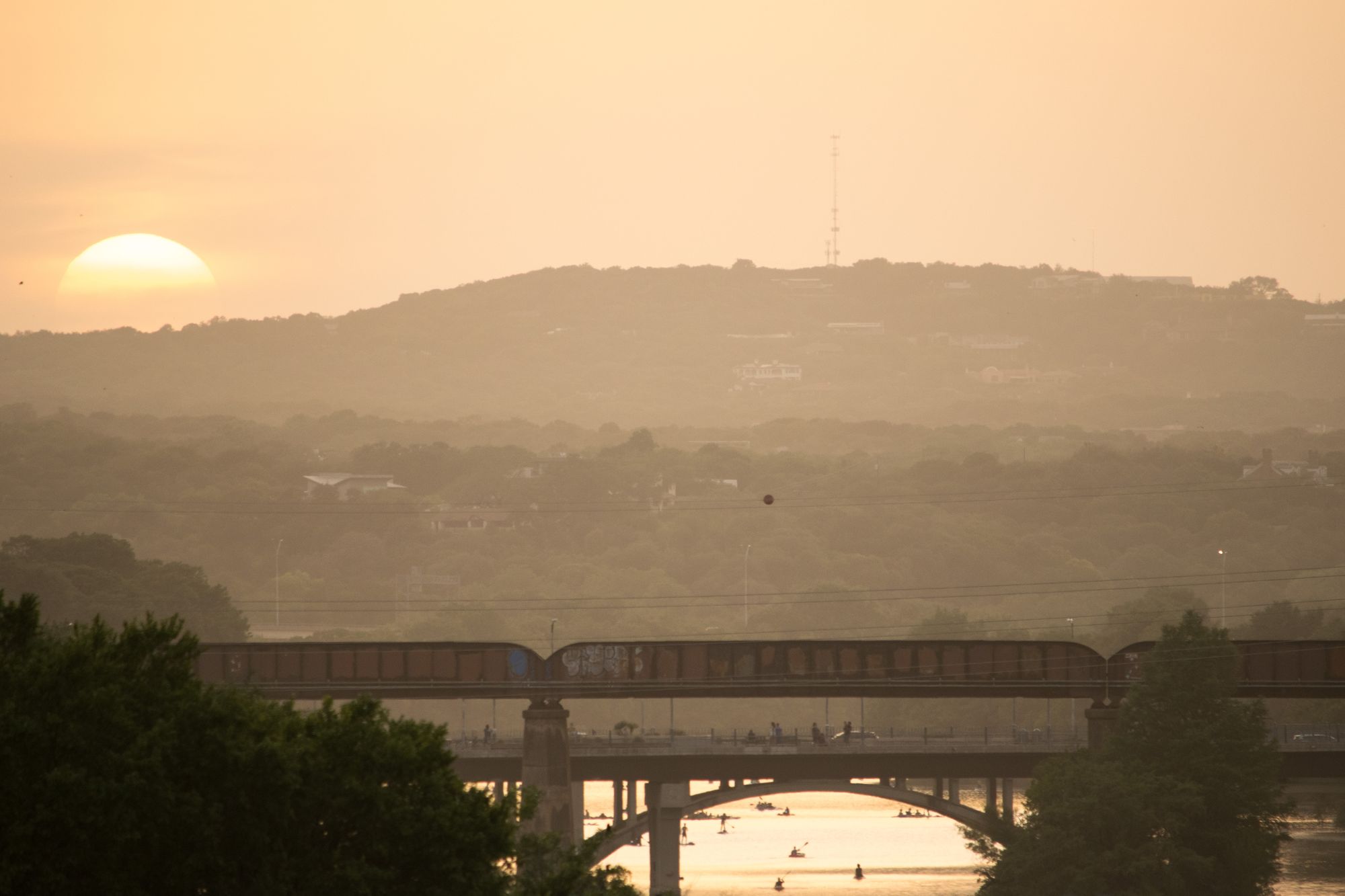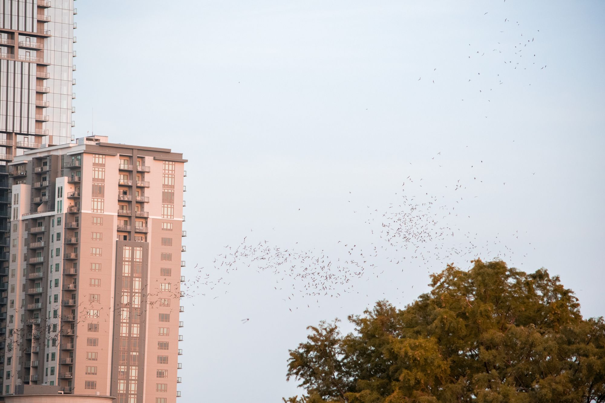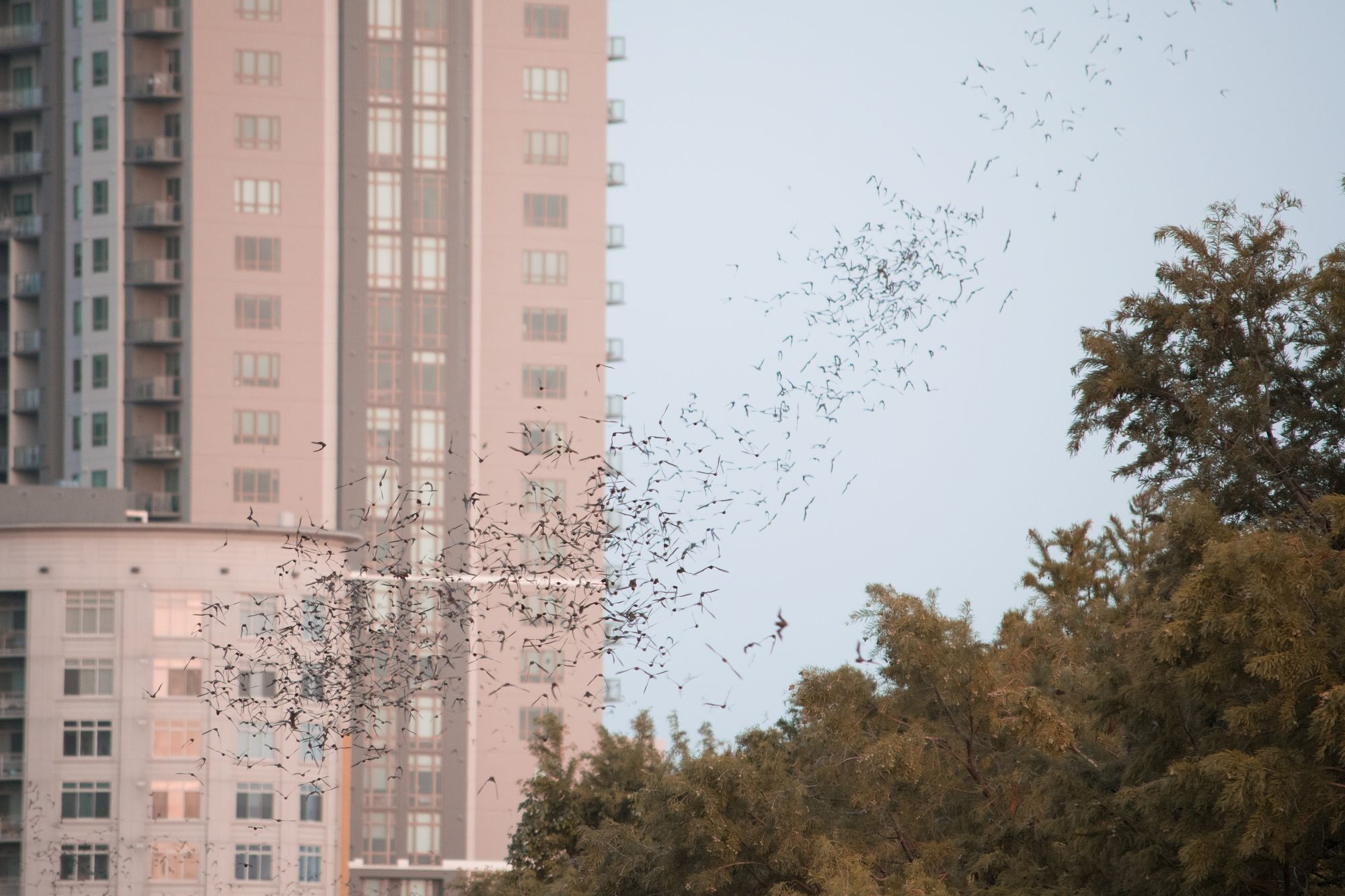 Later in the evening on Sunday night we geared up to see the bats on the SoCo bridge. The bats come out in waves at dusk, and head east on the river.