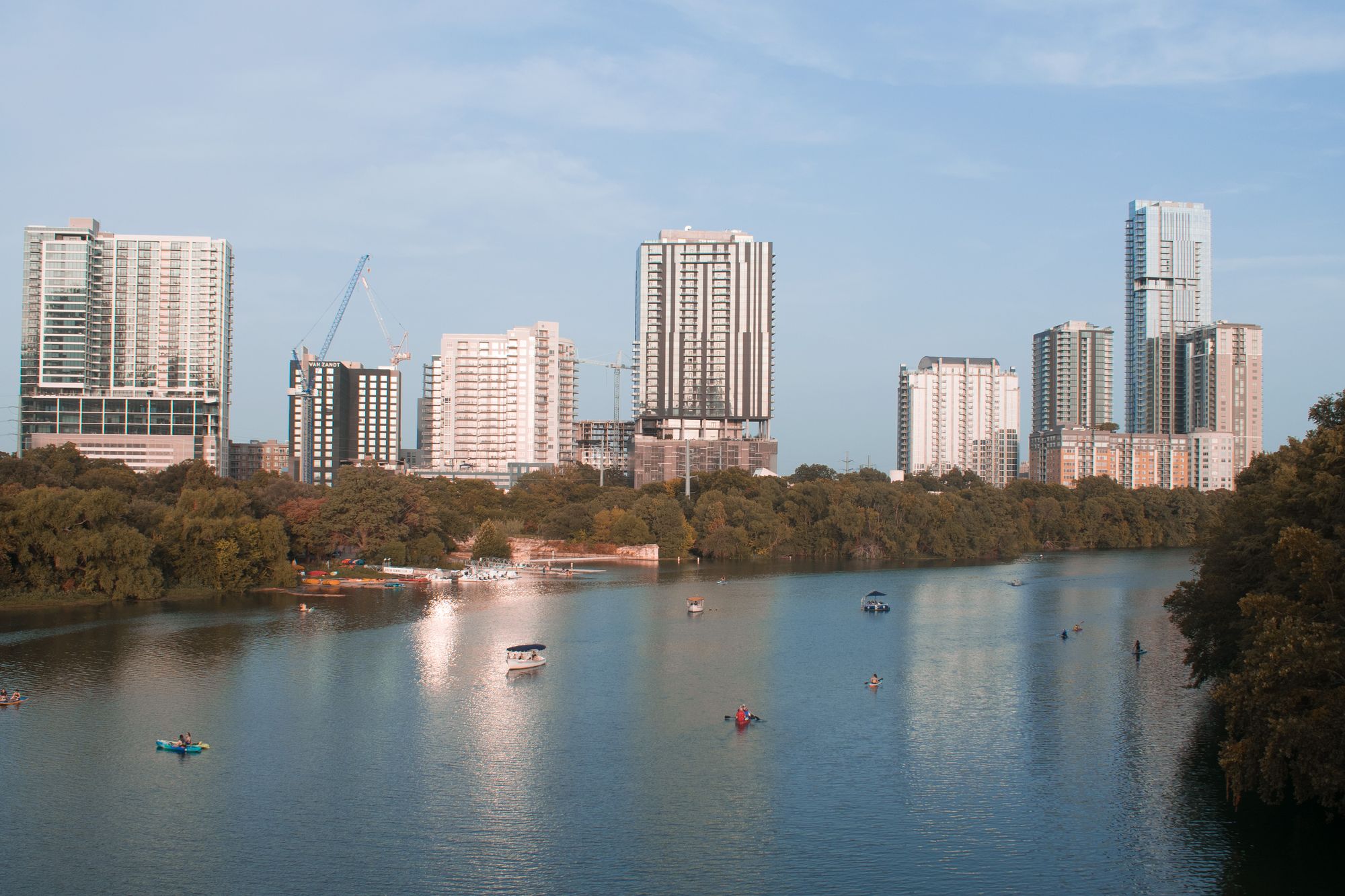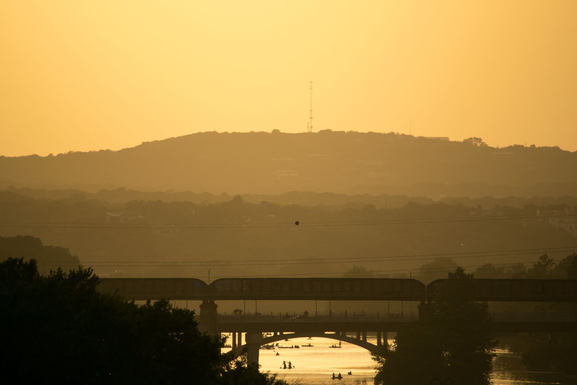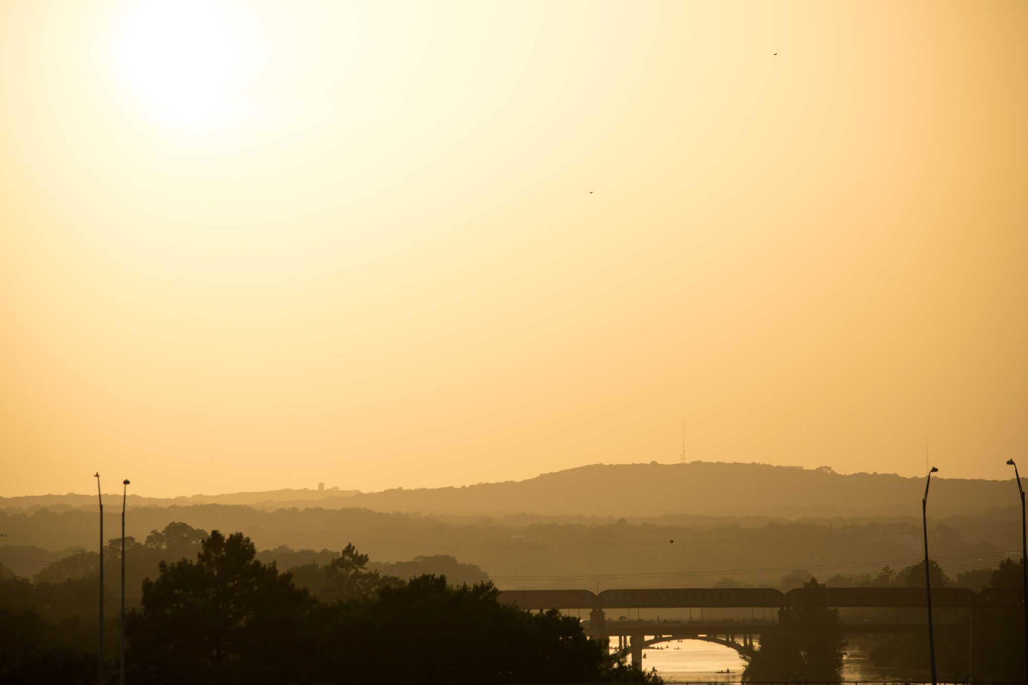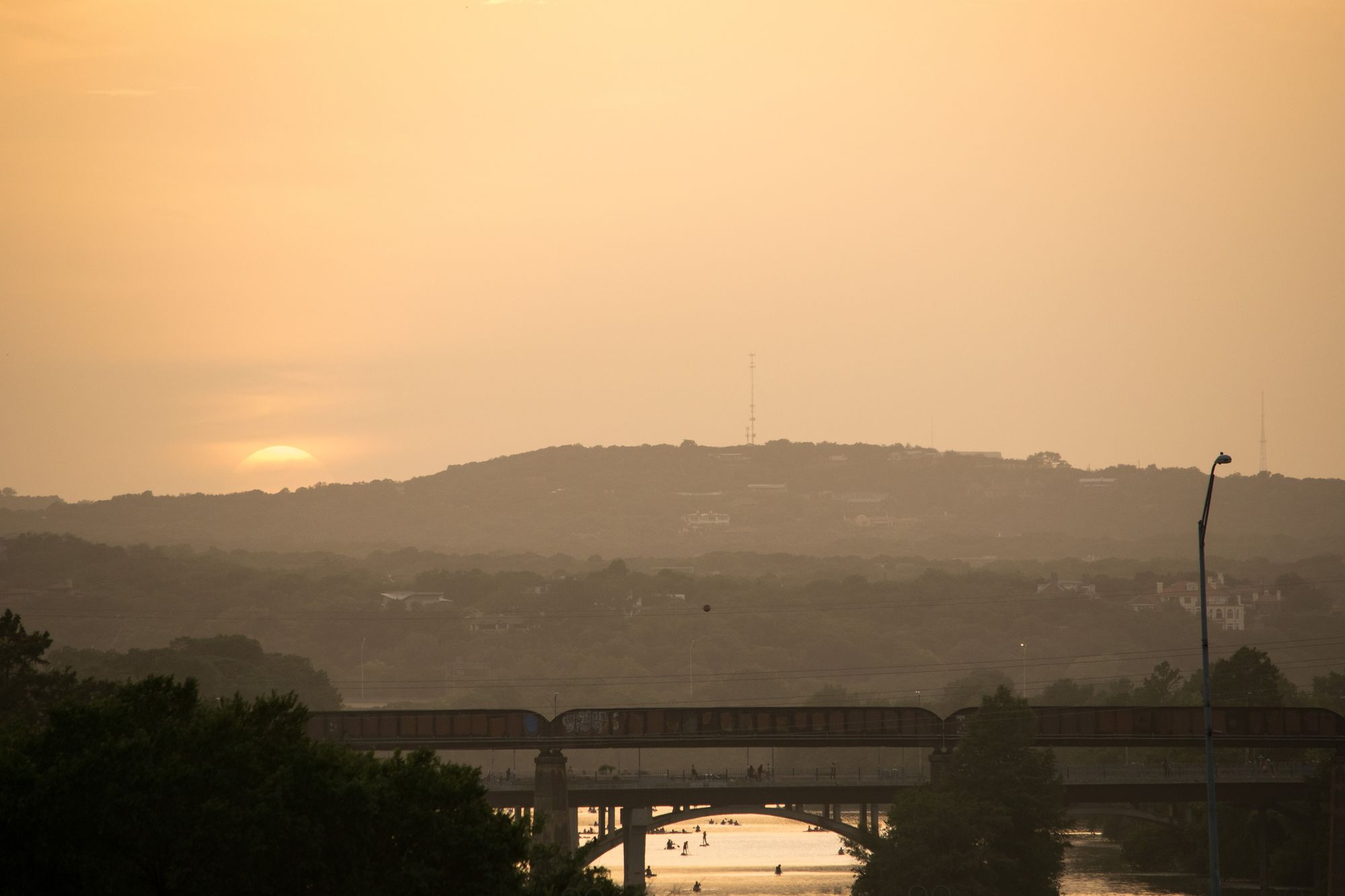 Later in the evening on Sunday night we geared up to see the bats on the SoCo bridge. The bats come out in waves at dusk, and head east on the river.