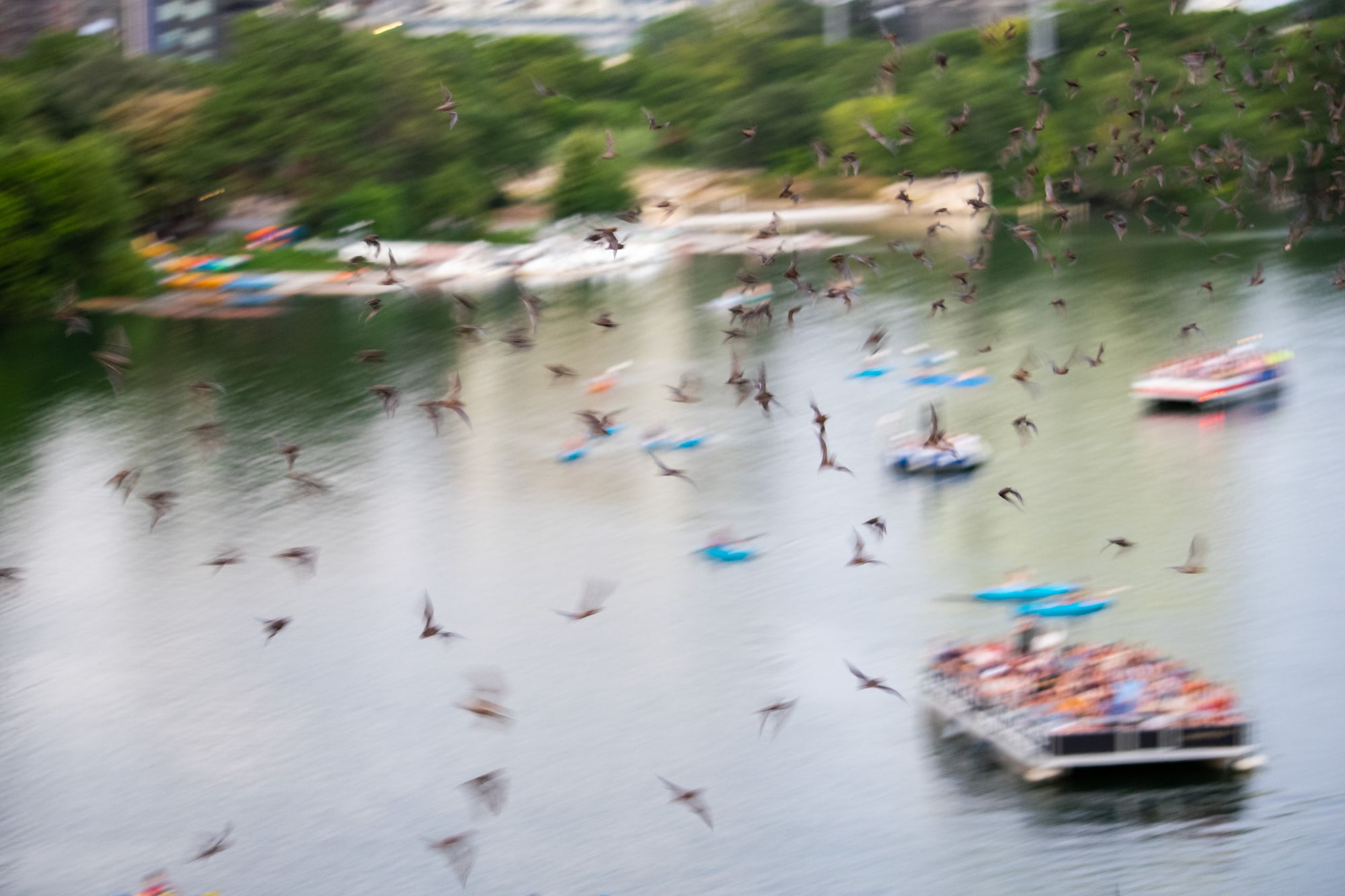 The bats would also fly out in a frenzy towards the center of the river over the water-seated onlookers.