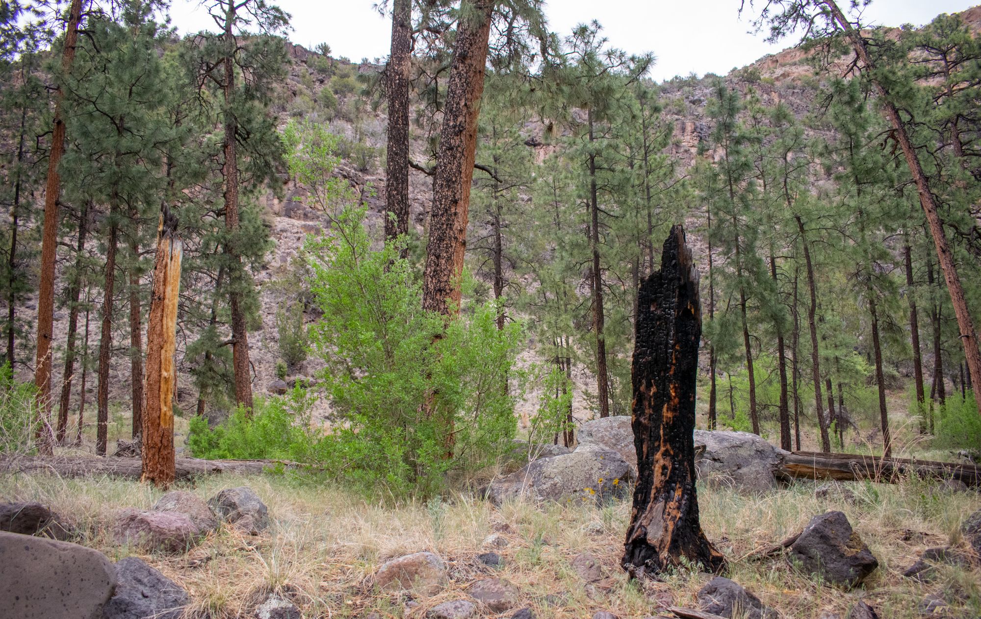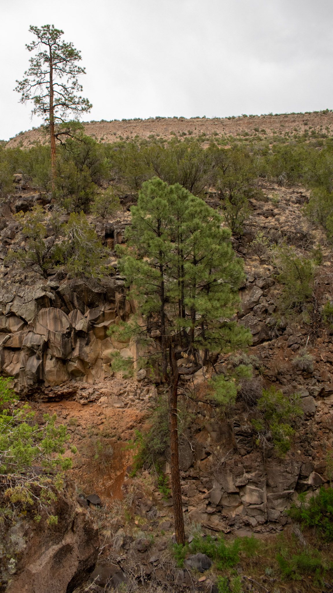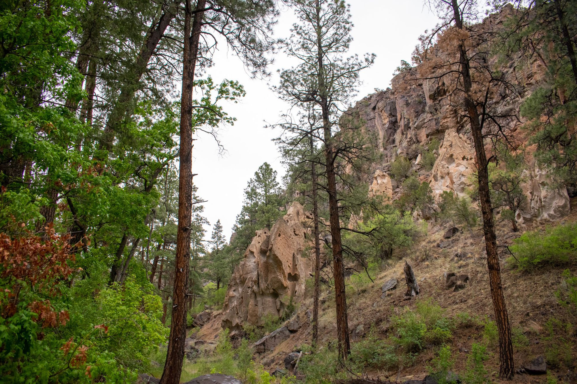 Today was a planned hiking day at one of the highly recommended spots near Santa Fe called the Bandelier National Monument. We entered the canyon at around 12:30 in the afternoon, with beautiful rock formations to the right of the road beyond the trees. After parking, mom stopped by the gift shop in search of a hat which luckily we found right away. There was a masked park ranger at a table near the gift shop entrance who pointed us in the direction of the main loop trail, and we were promptly off on our little adventure.