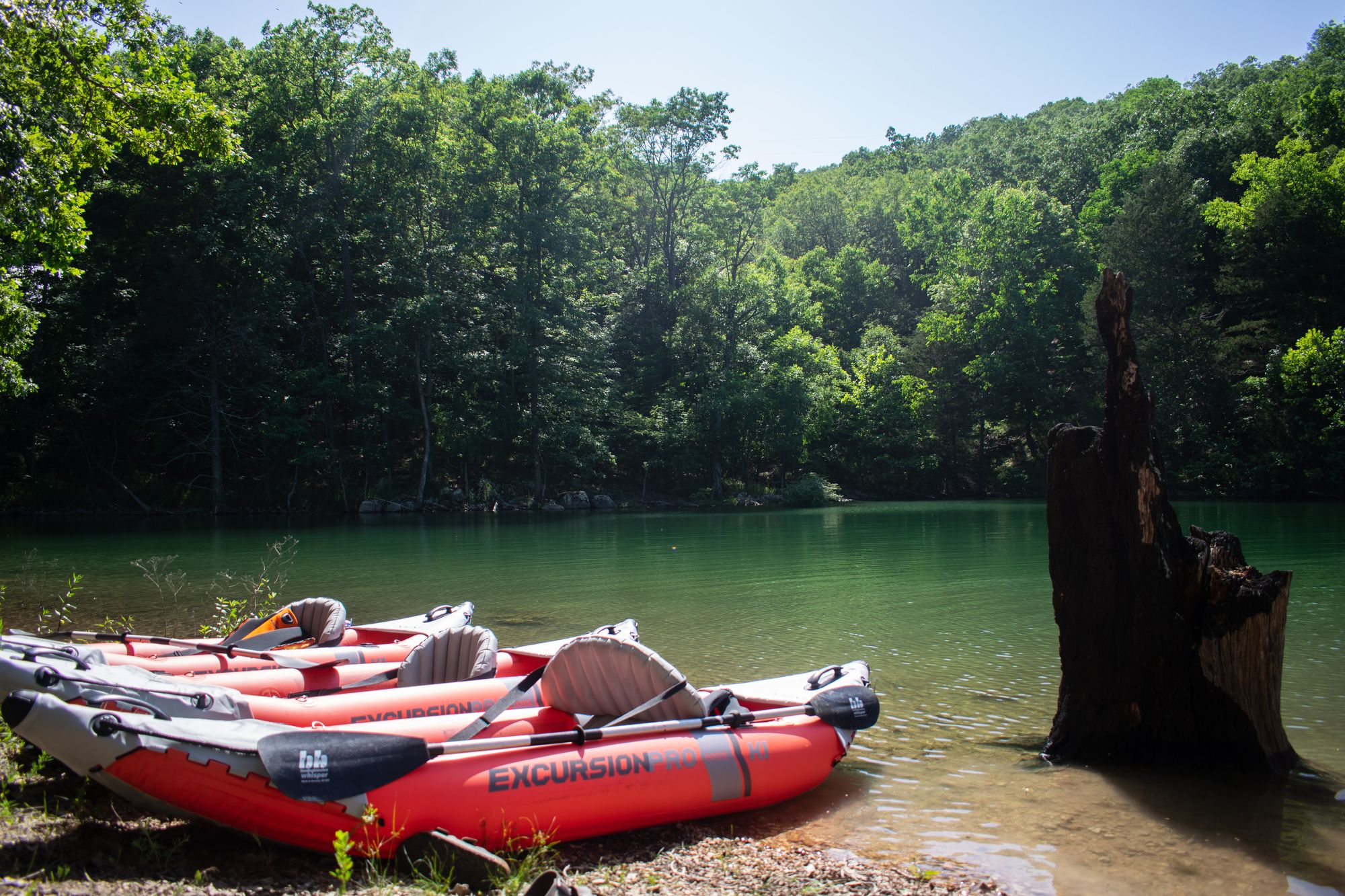 Our first full day in Eureka Springs was a chill day in the water; I took my time waking up, had a good breakfast, and we spent a bunch of time blowing up our inflatable kayaks to take them down to the water.