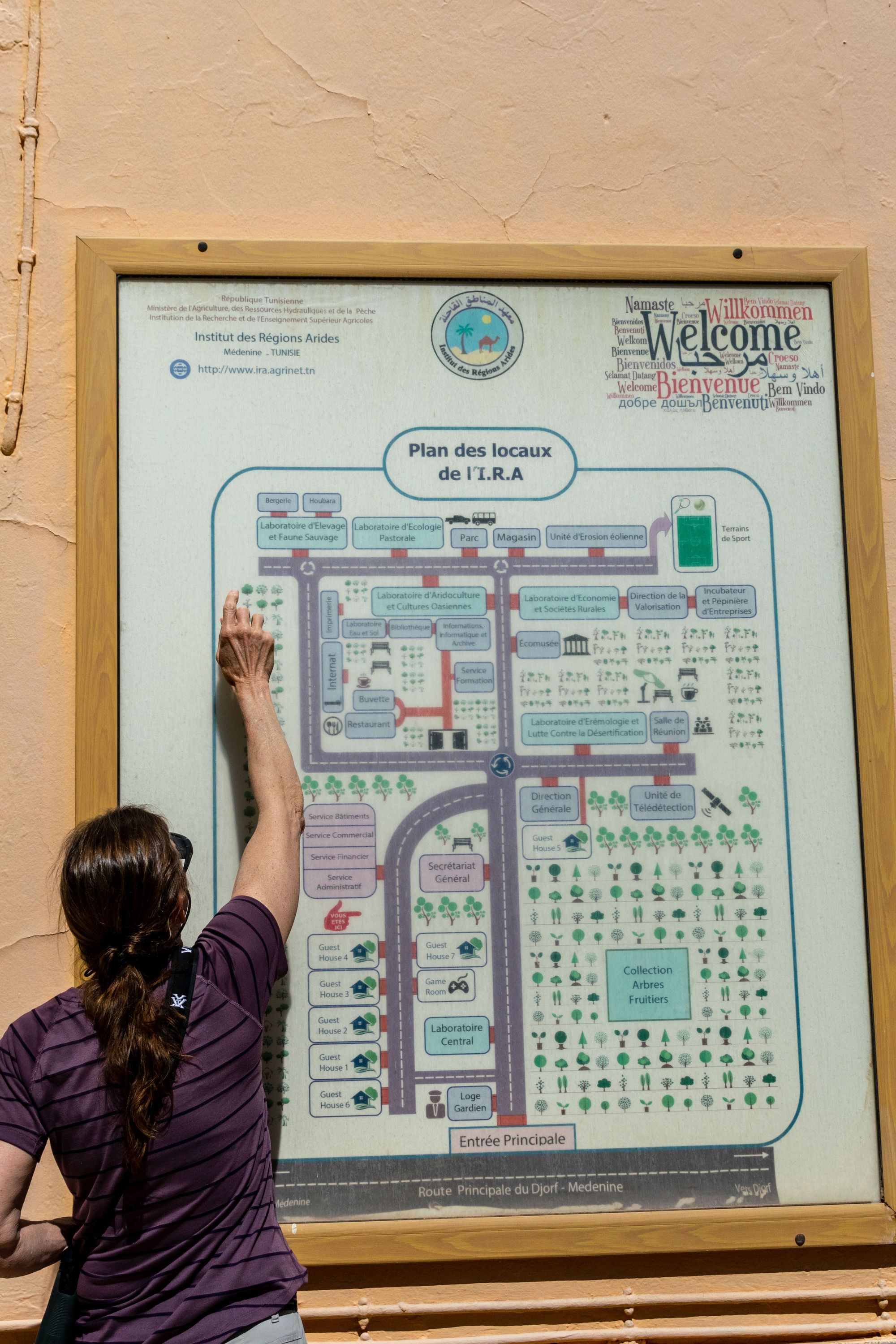 My flight travel from Kansas City to Tunis consisted of a little over 16 hours of total travel time, but Tunis was not my final destination. After landing, we had an additional six hour journey south towards Medenine and ultimately to the Institut des Régions Arides of Tunisia (معهد المناطق القاحلة), colloquially called IRA (phoneticaly, "EERA"). You can see the journey we took in a light teal color we took on the reference map at the bottom of the page.