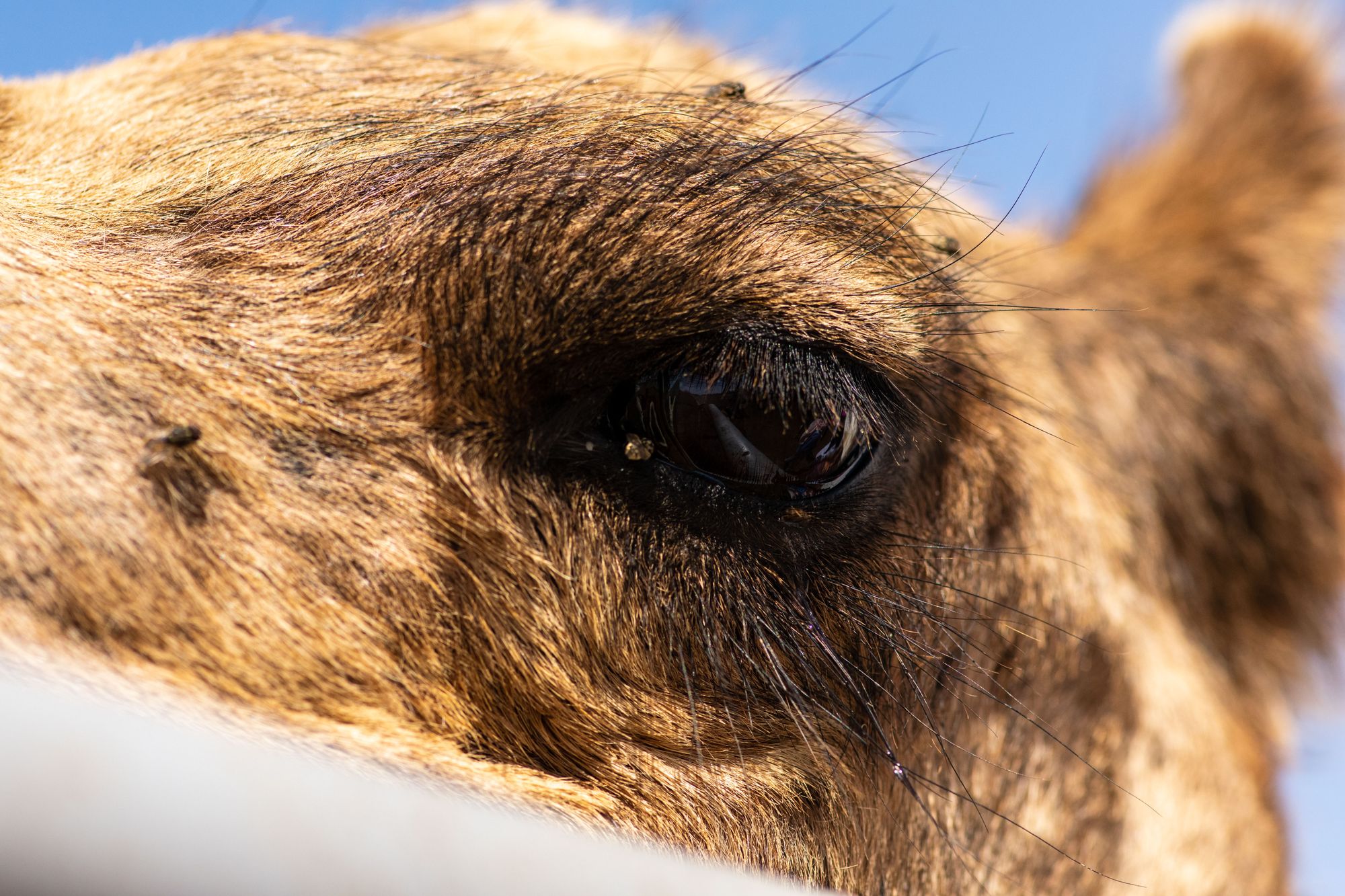 IRA breeds and researches camels on-site as well. This was one of the first few times I had ever got to see a camel from up-close - initial impressions are that they are relatively laid-back animals. Of course, these particular camels exist in captivity, so they walked right up to our group and happily accepted some under-the-neck scratches. If you wanted flys for some reason, this would be the place to find them, as they circled the camel's head and body incessantly. This is the first one that approached us and kindly posed for the camera: