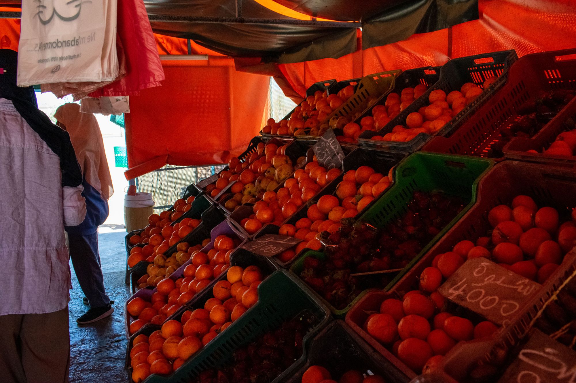 On the other side, there was the aforementioned open-market stall. They sold primarily produce items, including tomatoes, oranges, strawberries, dates, potatoes, red onions, two kinds of peppers, green onions, and more. We had a brief moment with the shopkeeper about the variety of peppers that they stored, trying to determine a specific variety, but really it was just "sweet" or "hot." We didn't buy any today.