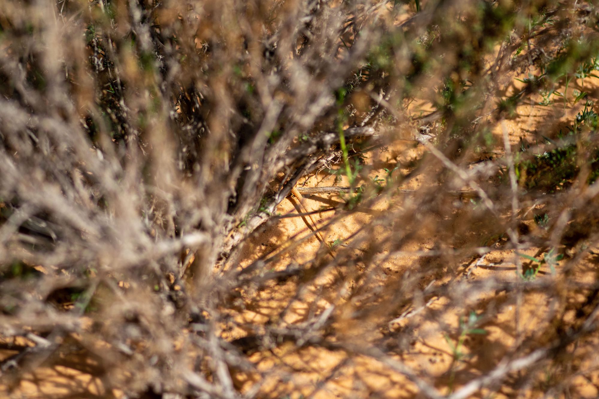 Finding lizards is easier after you develop what is called a search image for them. For me, that manifested as looking for the slight shadows that have a distinct movement pattern and size. I would walk by shrubs, and as I walk by I look for the movement patterns - if I see it, I stop moving, keep my eye on it, and try to photograph.