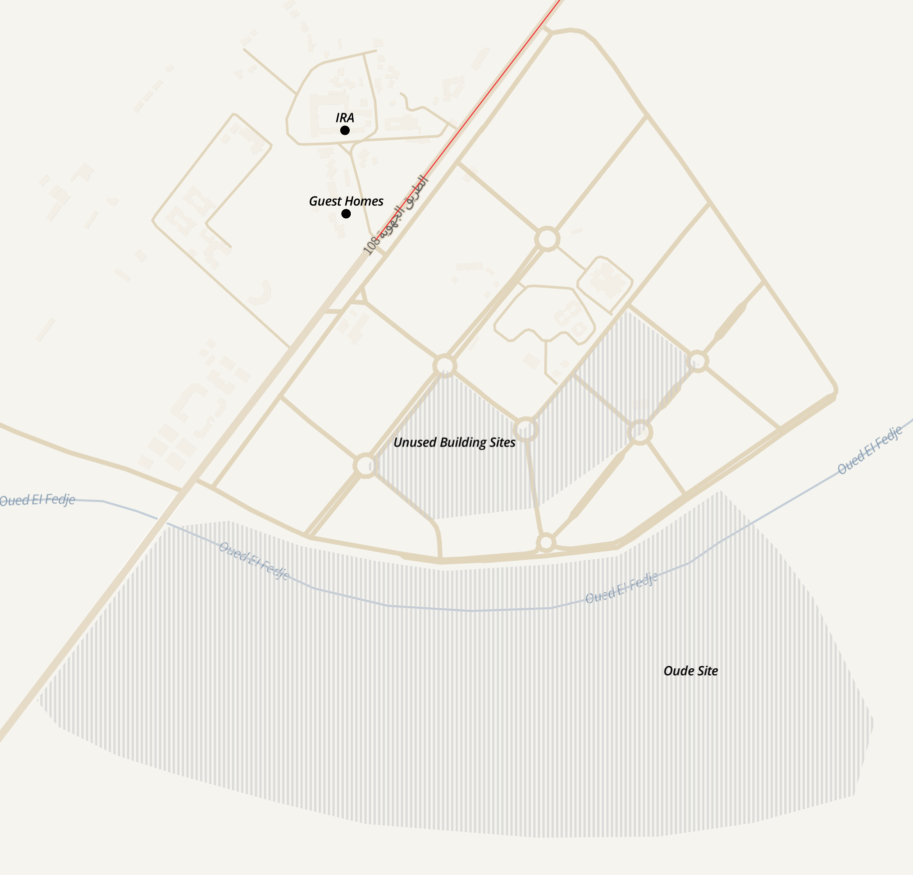The wadi is essentially a sandy creek bed, which stays dry at all times except for the rainy season. The one by IRA is currently without much water, but there is enough to sustain the local stilts and keep your shoes muddy walking through. We followed the main road down to meet up with some sand tracks for cars to get down there. After following the tracks for a while, we eventually cut back north to head over to the complex (and eventually back home).